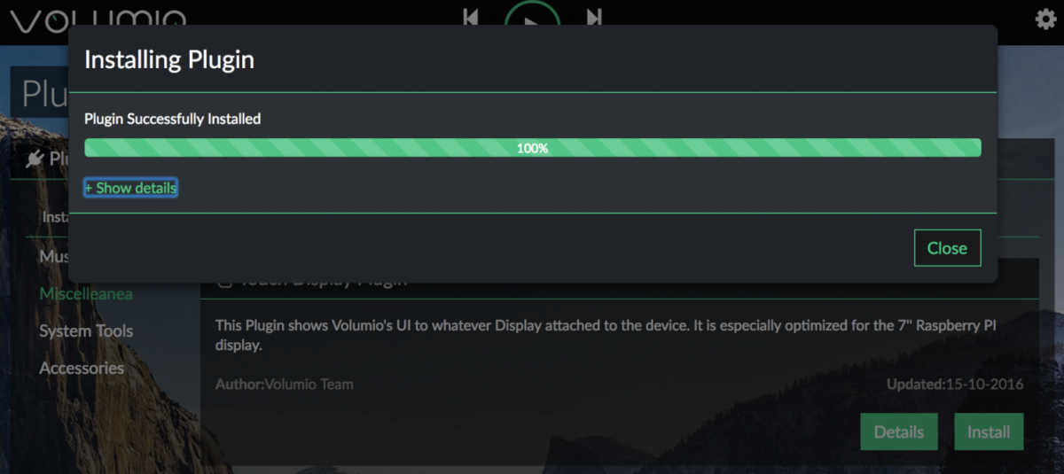 Damit der Touch-Screen funktioniert muss man in Volumio ein Plugin installieren. Weil der Touch-Screen noch nicht funktioniert muss man dies vom PC aus machen.