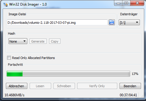 Ich ging nach der Anleitung von der Volumio Seite aus. Hier kurz zusammengefasst die Schritte die ich ausführen musste: