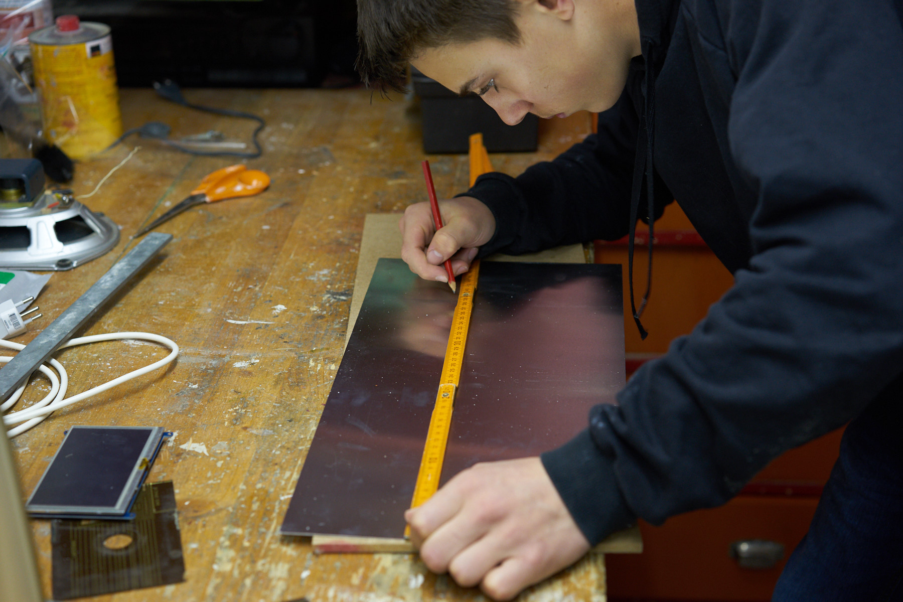 Die Lautsprecher vom Radio waren nicht mehr die besten, deshalb habe ich einen PC-Lautsprecher mit einem Subwoofer eingebaut den ich nicht mehr brauchten. Da der Subwoofer im Gehäuse nicht Platz gehabt hätte entfernte ich es.