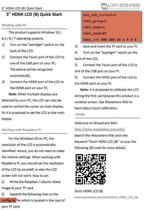 In der Anleitung steht, dass man die SD Karte wieder auf dem PC öffnen muss und die Datei config.txt anpassen muss, damit die der Raspberry Pi auf dem HDMI Ausgang die richtige Auflösung ausgibt.